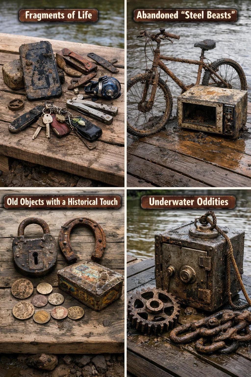 Denne aktivitet er som en "metalskattejagt" under vandet, og her er nogle interessante fund, som folk ofte støder på: